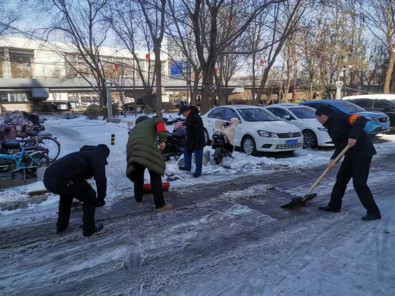 路面積雪經(jīng)過行人及車輛的踩碾及降溫結(jié)冰變得又厚又硬,給清掃工作帶來了極大困難,但集團(tuán)公司的黨員志愿者們不畏艱苦,干勁十足?;顒?dòng)中,大家分工明確、相互配合,利用鐵鍬、雪鏟等工具,有條不紊地開展積雪清理活動(dòng),重點(diǎn)對(duì)停車場(chǎng)主干道、人行通道及自行車存放處進(jìn)行了集中清理,確保了日常路面暢通和群眾出行安全。