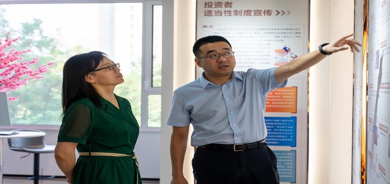 活動(dòng)伊始,恒銀期貨總經(jīng)理湯志江帶領(lǐng)和講解下,河北經(jīng)貿(mào)大學(xué)副校長(zhǎng)杜紅梅、金融學(xué)院黨委書記魏健、金融學(xué)院院長(zhǎng)楊雪美、金融學(xué)院黨委副書記王薇、金融學(xué)院副院長(zhǎng)竇麗琛、金融學(xué)院就業(yè)工作負(fù)責(zé)人高鵬飛等一行領(lǐng)導(dǎo)參觀了恒銀期貨總部的辦公區(qū)和恒銀期貨投資者教育基地,深入了解了公司的組織架構(gòu)、業(yè)務(wù)模式、企業(yè)文化、發(fā)展戰(zhàn)略及黨建扶貧等工作。通過(guò)參觀,經(jīng)貿(mào)領(lǐng)導(dǎo)對(duì)于恒銀期貨的辦公環(huán)境、業(yè)務(wù)模式和發(fā)展前景給予了高度評(píng)價(jià)。